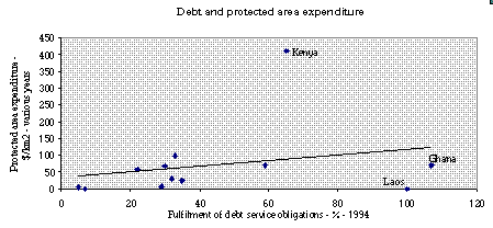 7. Protected area expenditure from James et al., cf Note 1. Debt figures from World Debt Tables 1996.